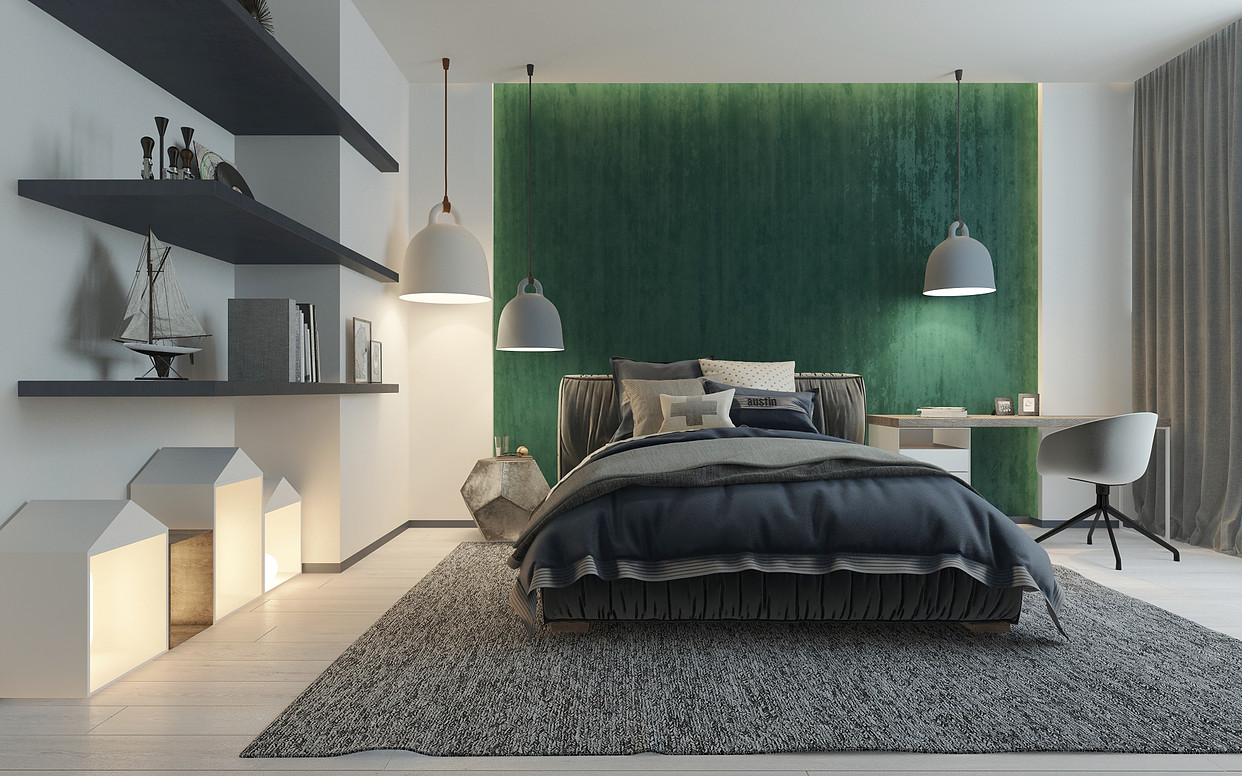 Green Accent Wall. Accent walls are simply walls in a room that are unlike the others, made to stand out and truly A bedside bench sits at the end of the large bed, and a green accent wall behind the headboard gives. A citron green accent wall invigorates this bedroom with life and personality.